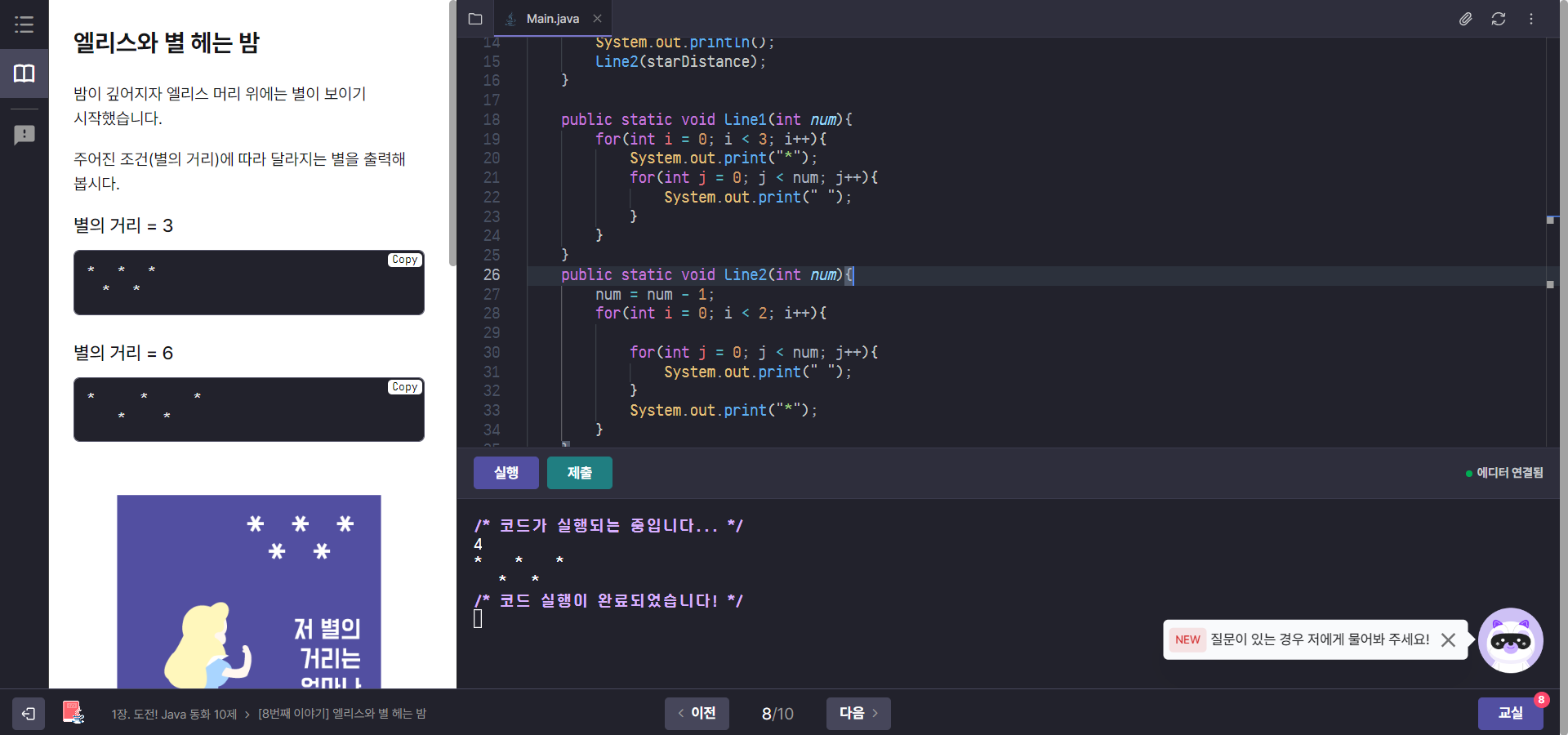 주어진 조건(별의 거리)에 따라 달라지는 별을 출력해 봅시다.