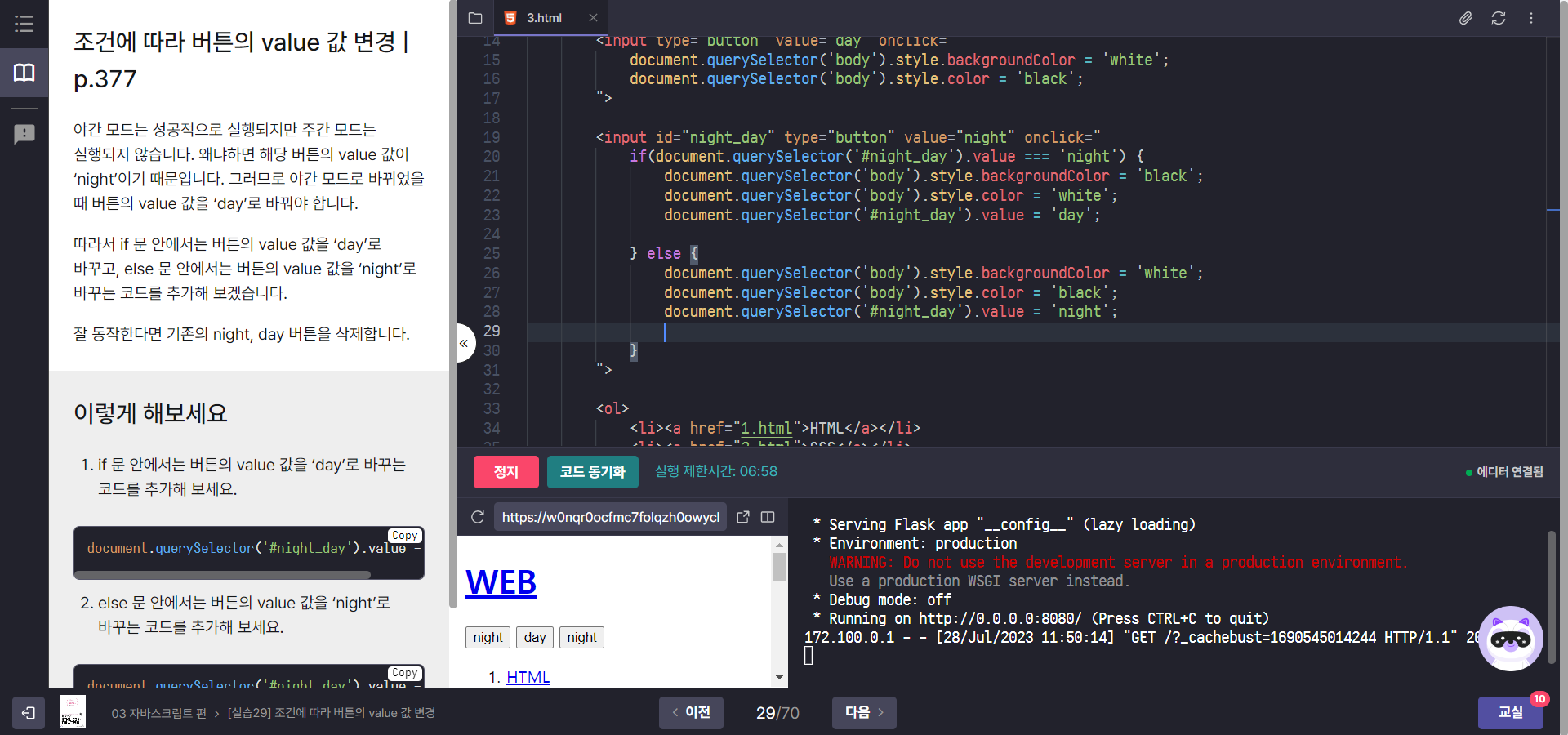 조건에 따라 버튼 value값 바꾸기